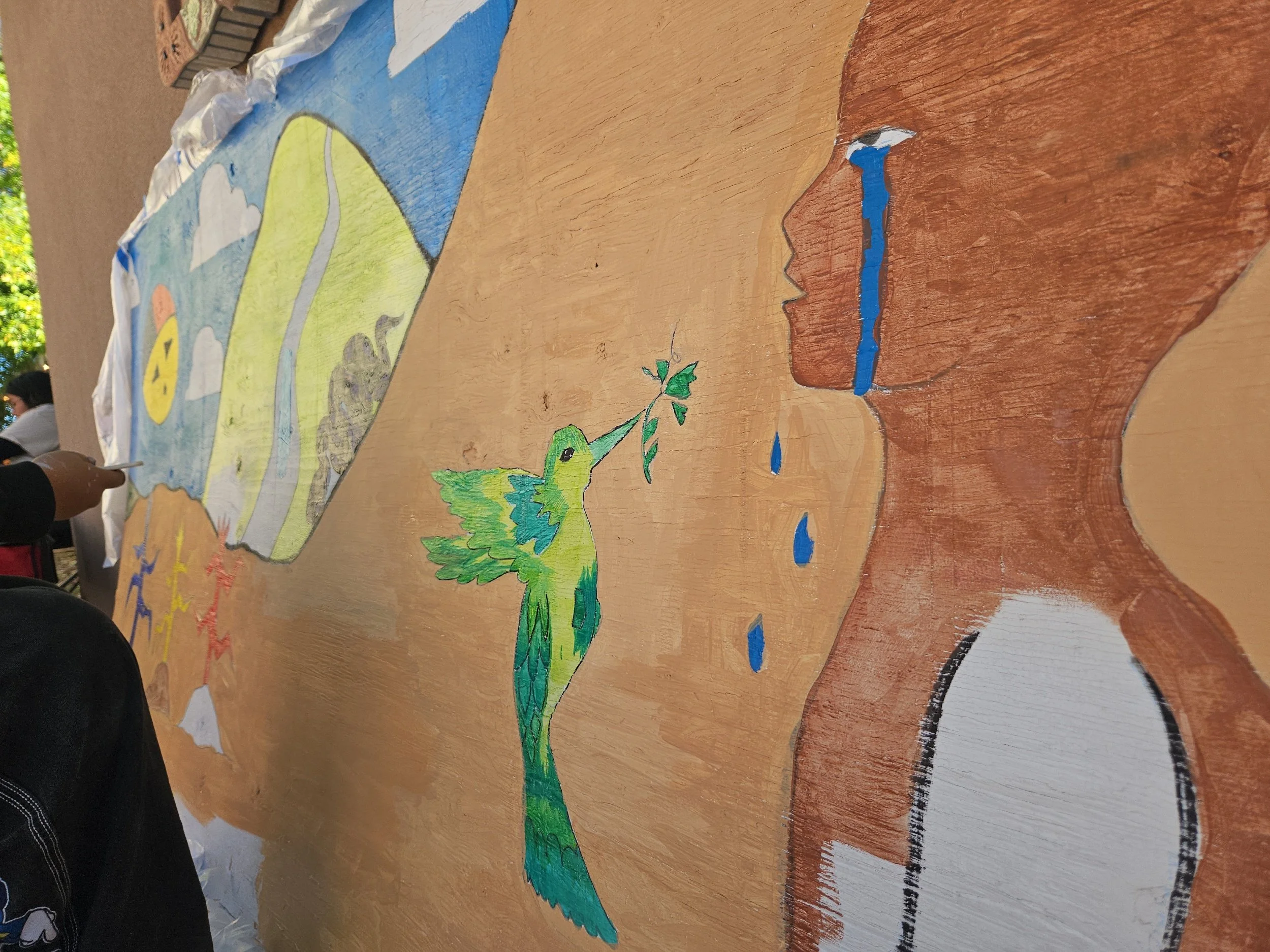 Working with NACA middle schoolers, combining their designs to create a mural at the Coors Open Space, ABQ NM